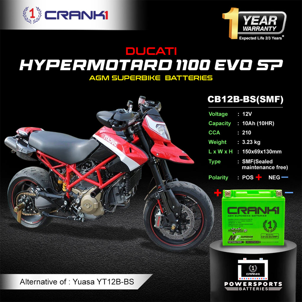 Battery For Ducati Hypermotard 1100 EVO SP (2007-2025) - CB12B-BS - Factory Activated