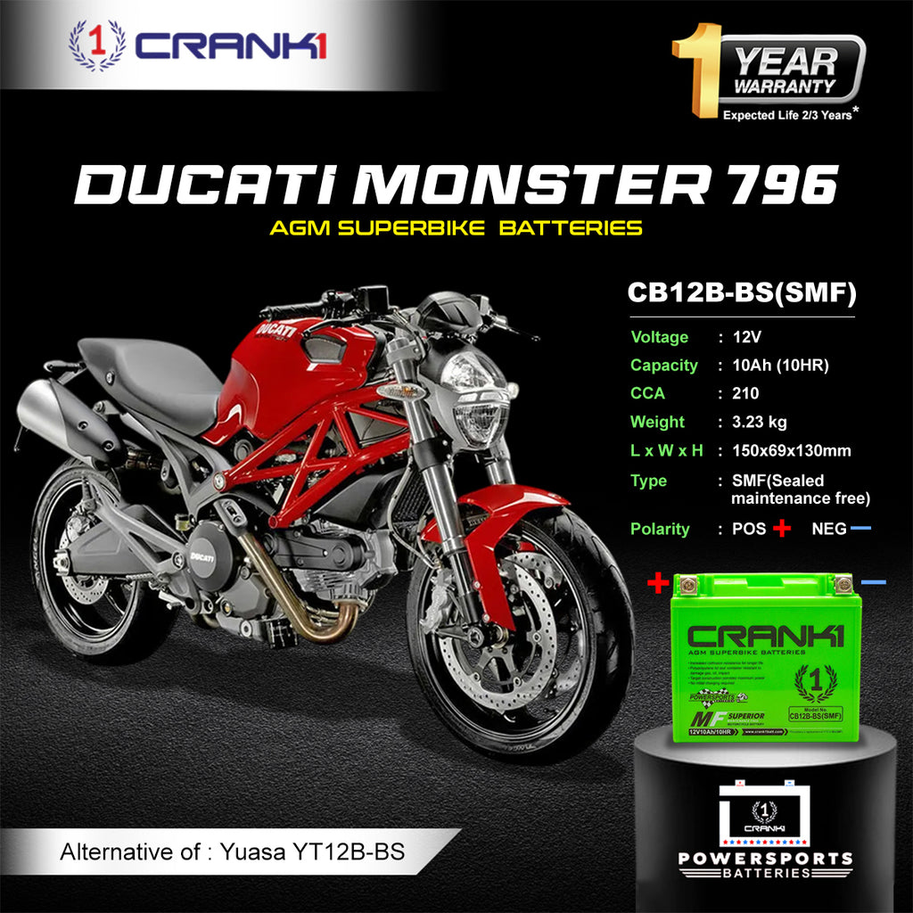 Battery For Ducati Monster 796 (2010-2025) - CB12B-BS - Factory Activated