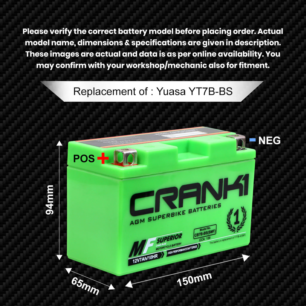 CRANK1 batteries use AGM-VRLA technology, making them 100% maintenance-free. No care is required after installation. Specially designed with high Cold Cranking Amperes, CRANK1 batteries ensure your high-CC engine roars to life effortlessly.