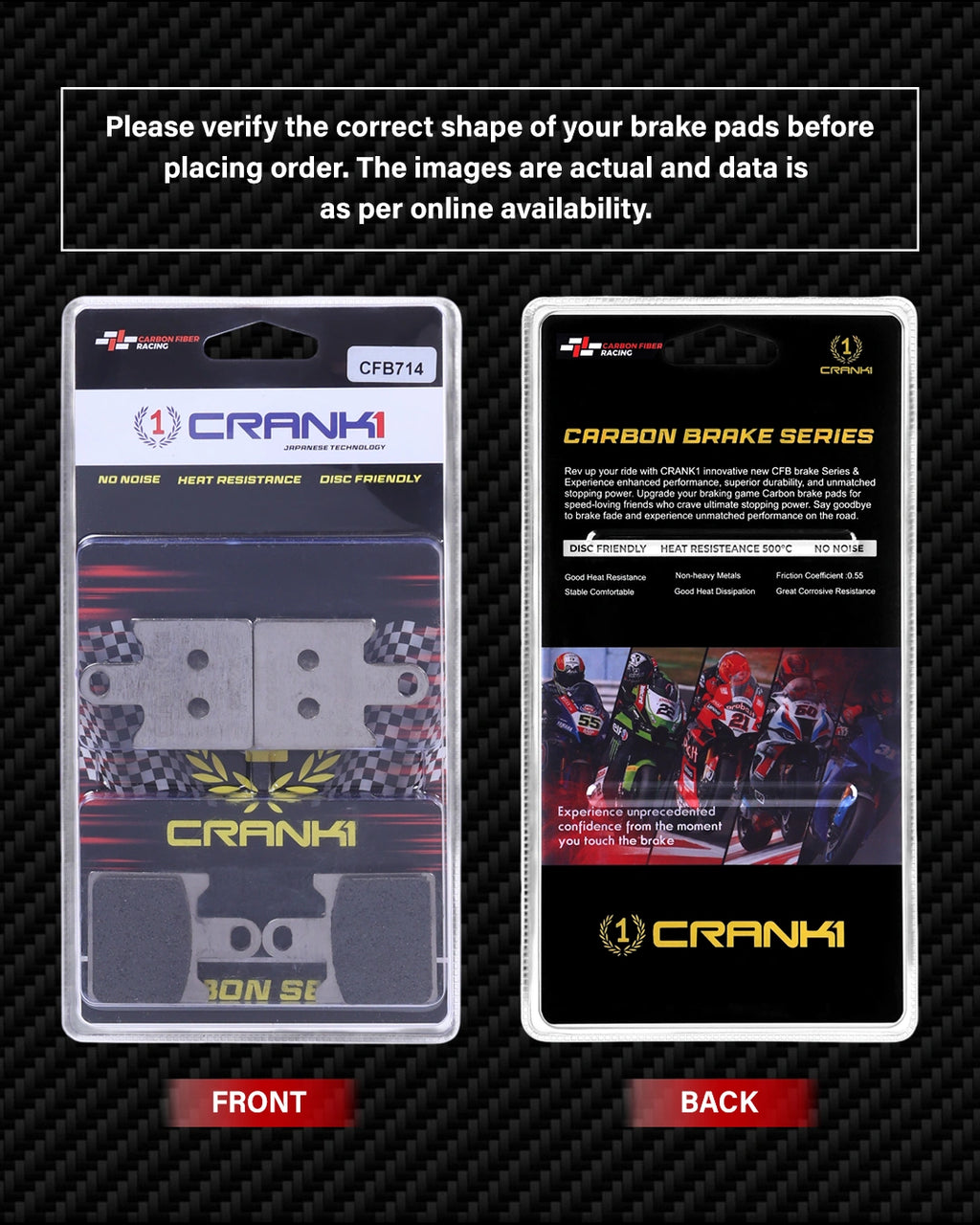 By upgrading to CRANK1 Carbon Brake Pads, you enhance your motorcycle’s braking performance, safety, and riding comfort.