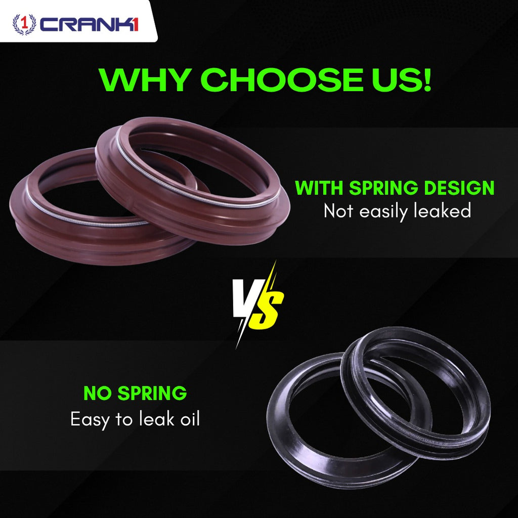 CRANK1 DUST SEALS feature external garter springs to help keep the fork tubes clean.
