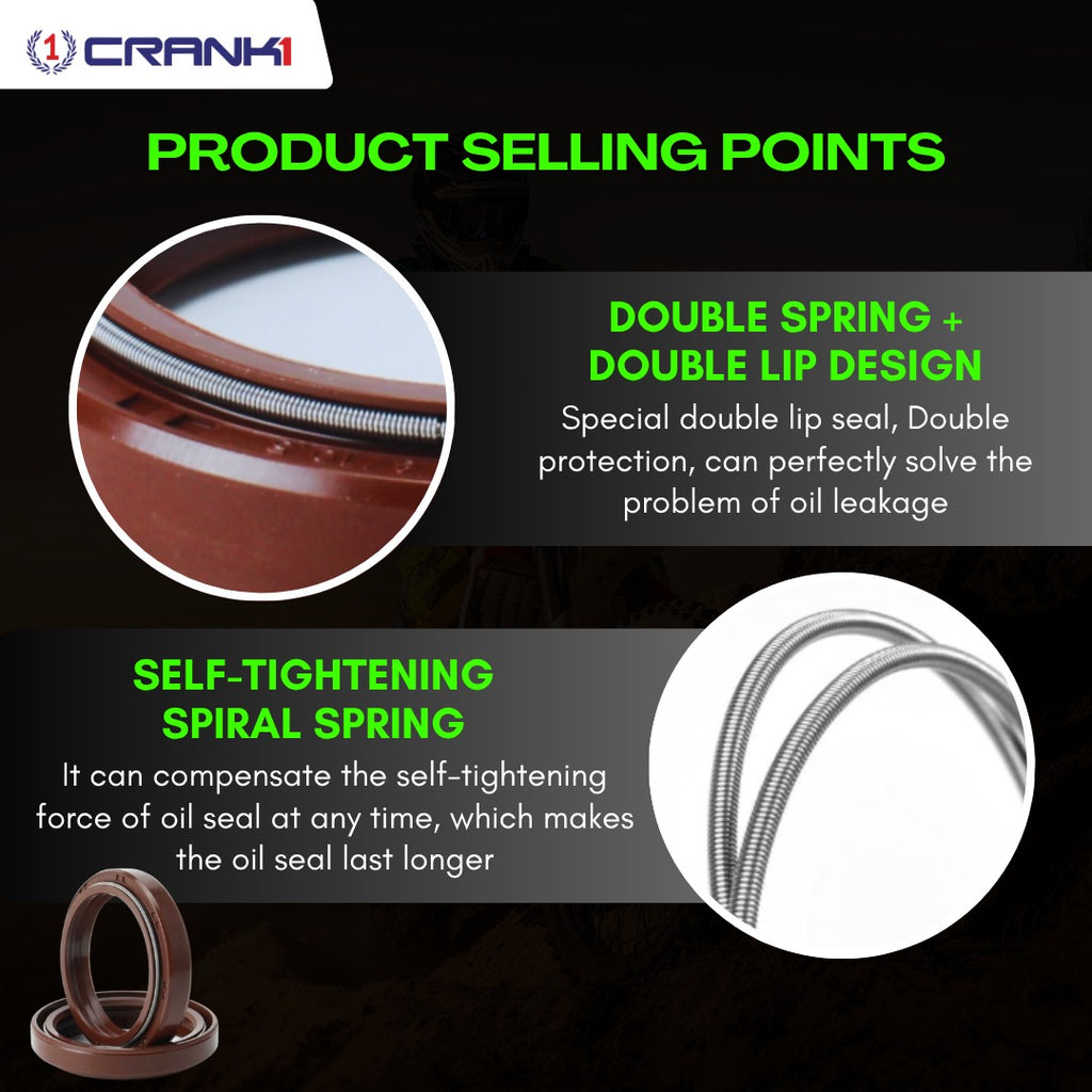 Designed & made for your fork. These oil seals are different! The quality of their execution is matched by the unique nature of the material used called FKM. FKM has excellent resistance to high temperatures, synthetic & hydraulic fluids & fuels, the material is also stable in fuels as well as petroleum-based oils and greases.