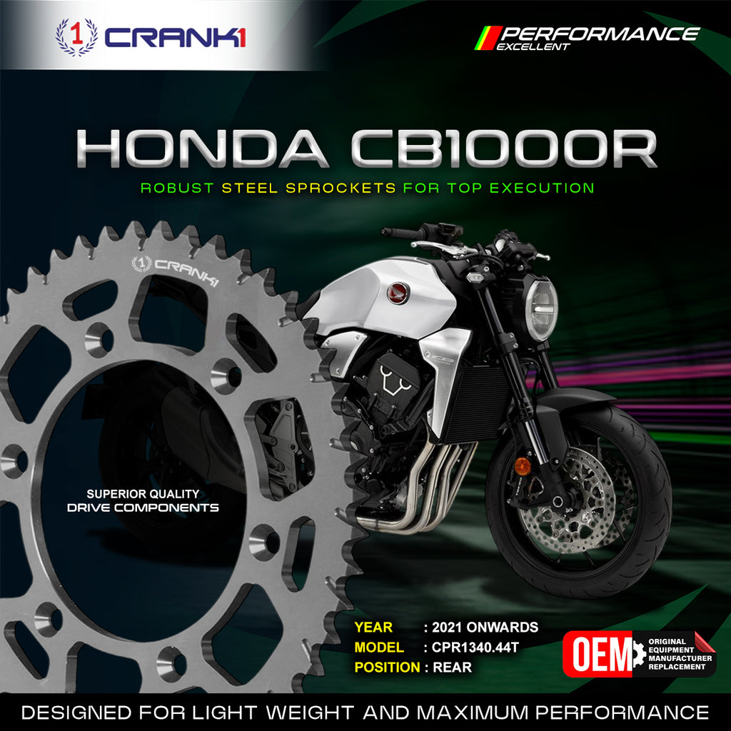 For CRANK1 steel rear sprockets, only the highest-grade C45 high-carbon steel is used in manufacturing, while the front sprockets are made from chromoly steel alloy. A wide range of sprockets for various motorcycles is now available in the CRANK1 Sprockets Collection.