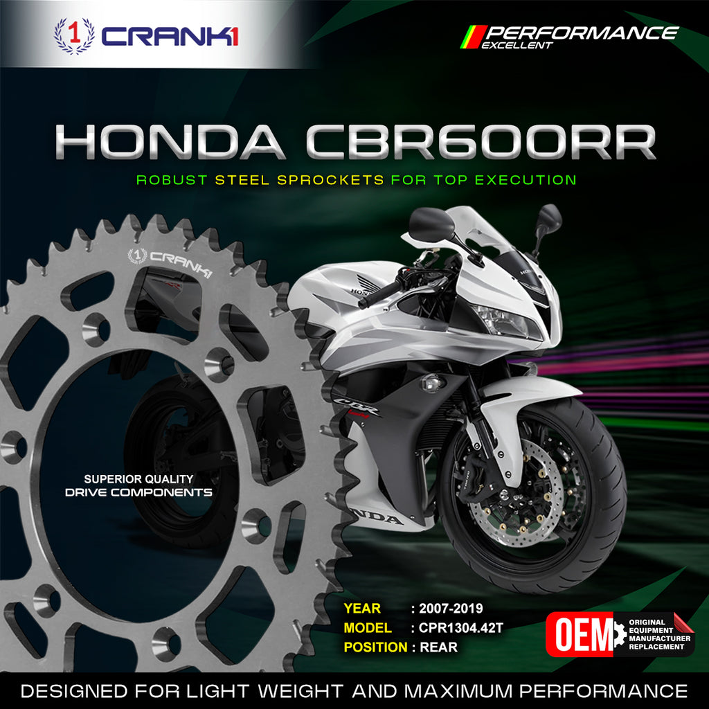 For CRANK1 steel rear sprockets, only the highest-grade C45 high-carbon steel is used in manufacturing, while the front sprockets are made from chromoly steel alloy. A wide range of sprockets for various motorcycles is now available in the CRANK1 Sprockets Collection.